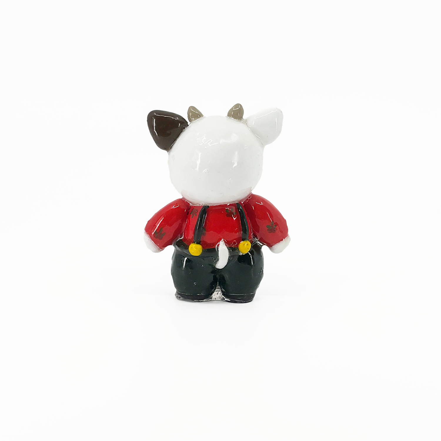 Clay figurine is 3.3 inches tall and 3 inches from arm to arm.